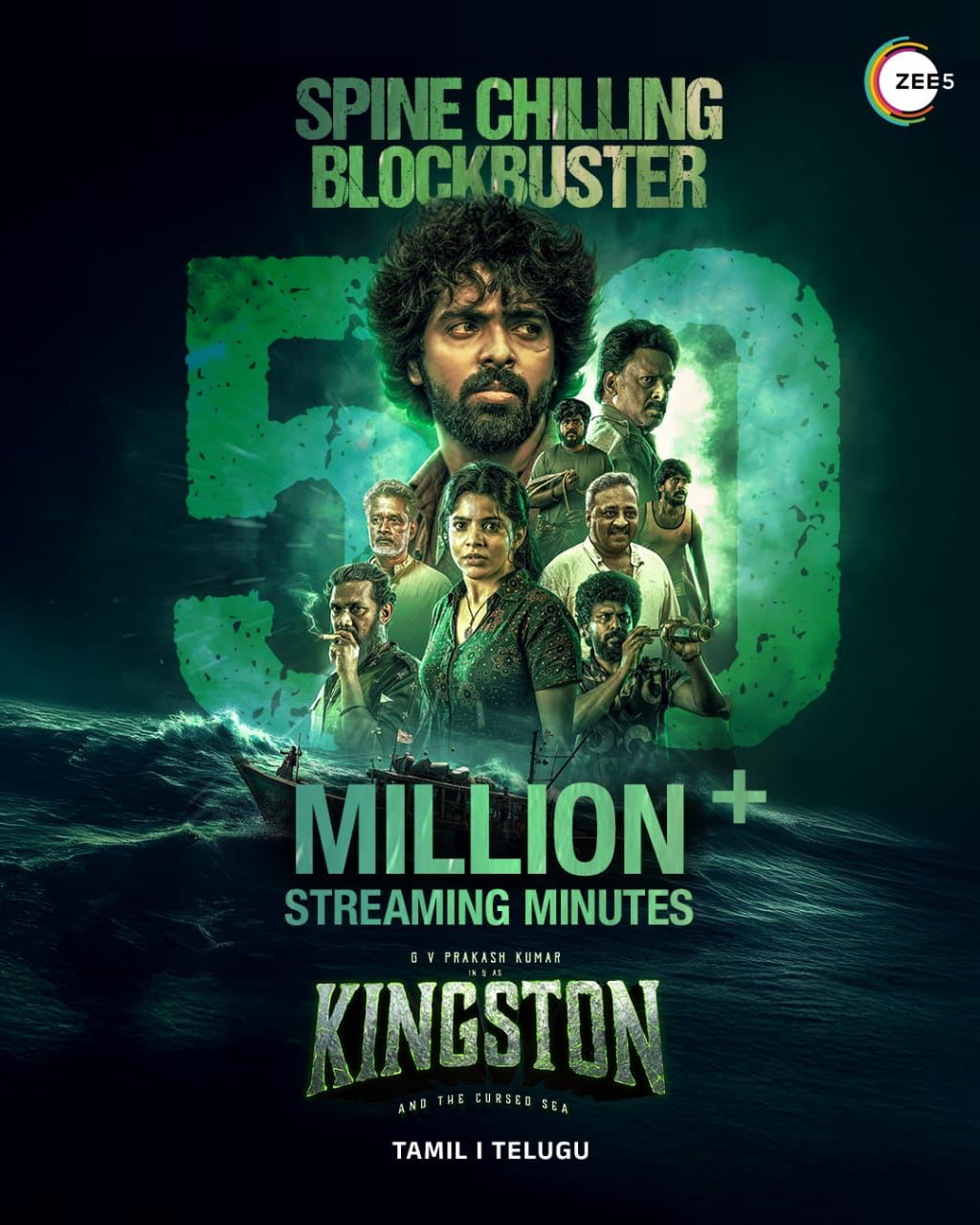 தமிழின் முன்னணி ஓடிடித் தளமான ZEE5 ல் சமீபத்தில் வெளியான கிங்ஸ்டன் திரைப்படம், வெளியான வெறும் 48 மணி நேரத்திற்குள், 50 மில்லியன் ஸ்ட்ரீமிங் நிமிடங்களைக் கடந்து சாதனை படைத்துள்ளது. இப்படம் கடற்கரை கிராம பின்னணியில், அசத்தலான விஷுவல்களுடன், ஃபேண்டஸி அம்சங்கள் நிறைந்த, புதுமையான ஹாரர் படமாக அனைவரையும் கவர்ந்துள்ளது. இயக்குநர் கமல் பிரகாஷ் இயக்கத்தில், இப்படத்தில் ஜிவி பிரகாஷ் மற்றும் திவ்யா பாரதி, இளங்கோ குமரவேல், சபுமோன் அப்துசமத் மற்றும் சேதன் கடம்பி ஆகியோர் இணைந்து நடித்துள்ளனர்.